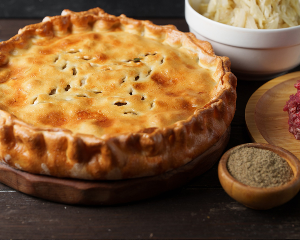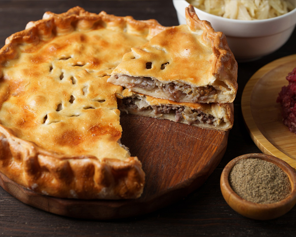 Мука пшеничная, вода, дрожжи, масло растительное, масло сливочное, фарш говяжий, лук репчатый, капуста, перец, соль.
